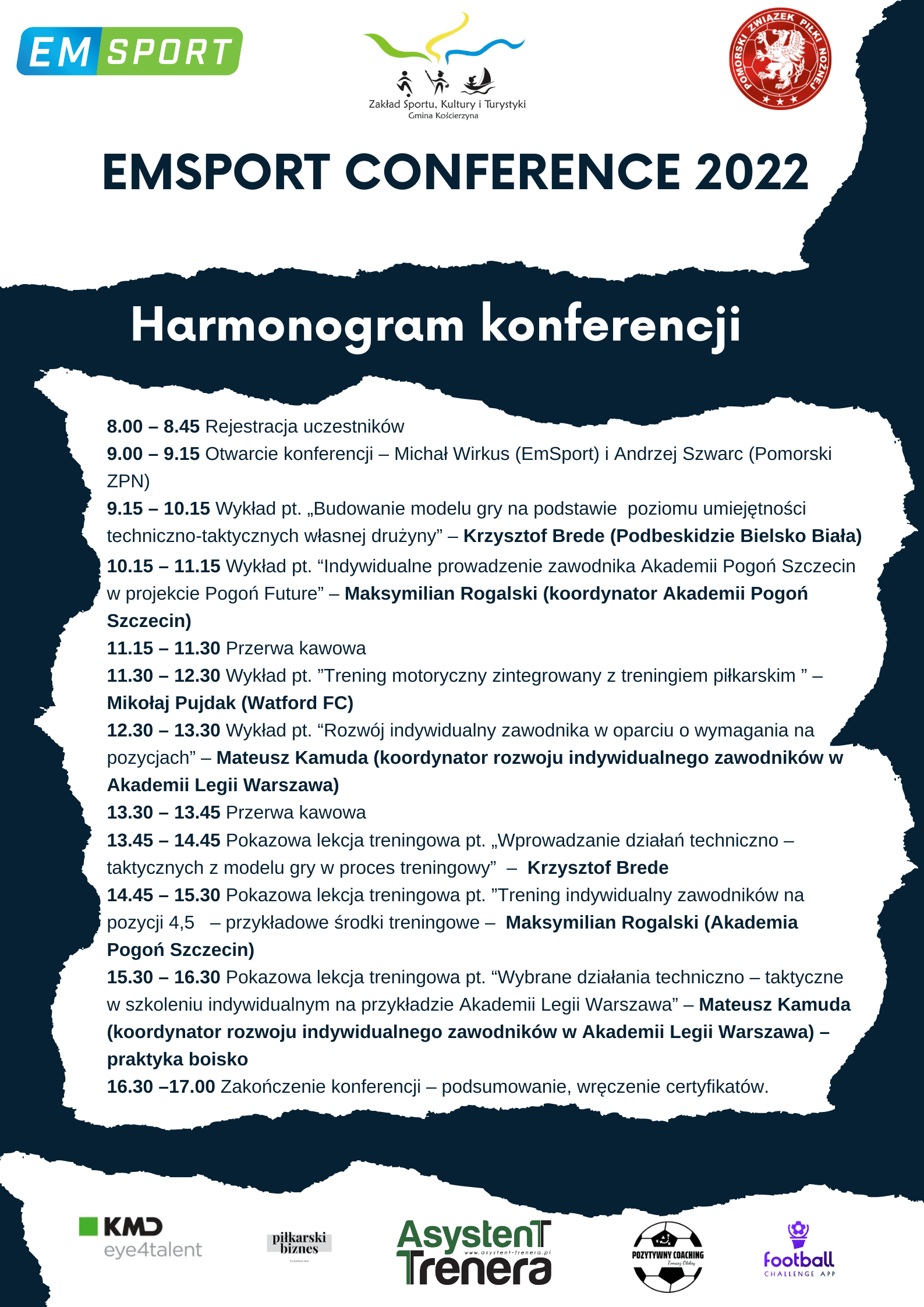 Serdecznie zapraszamy wszystkich trenerów, którzy wyrazili chęć uczestnictwa do zapoznania się z harmonogramem szczegółowym EmSport Conference 2022.