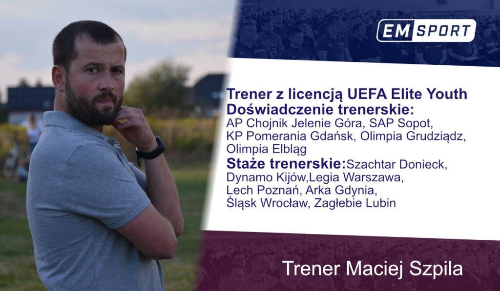 Witamy w naszym zespole trenera Macieja Szpilę. Trener Maciej aktualnie posiada licencję UEFA Elite Youth. Swoje doświadczenie trenerskie zdobywał pracując w: AP Chojnik Jelenia Góra, SAP Sopot, KP Pomerania Gdańsk, Olimpia Grudziądz. ZKS Olimpia Elbląg. W trakcie wieloletniej pracy odbył wiele staży trenerskich w takich klubach jak: Szachtar Donieck, Dynamo Kijów, Legia Warszawa, Arka Gdynia, Lech Poznań, Śląsk Wrocław, Zagłębie Lubin.
